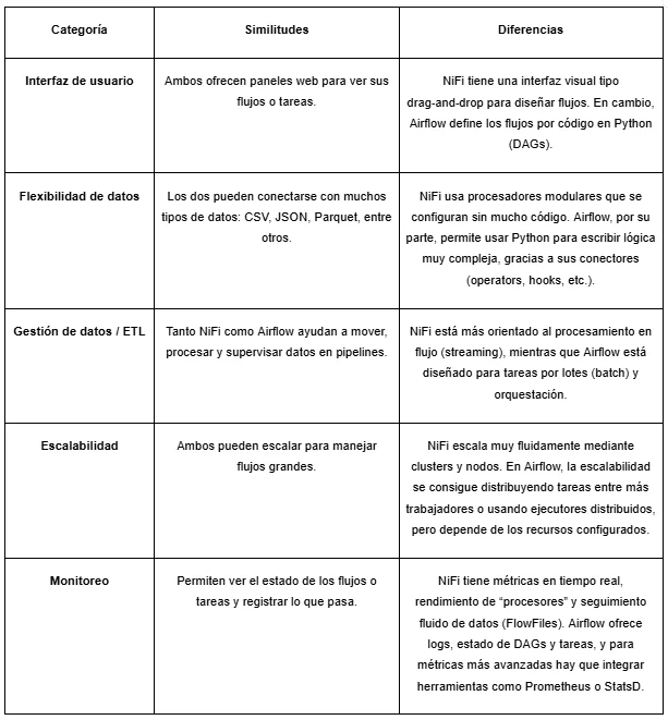 No es la herramienta más adecuada para el procesamiento en streaming. Airflow está diseñado principalmente para tareas por lotes (batch), aunque puede trabajar con pequeñas cargas en tiempo casi real si se adapta cuidadosamente.