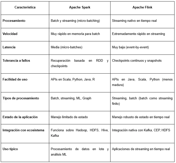 No se limita al procesamiento por lotes: también puede manejar flujos de datos continuos. Esto permite reaccionar inmediatamente a eventos, alertas o cambios en la información, algo fundamental para aplicaciones financieras, IoT o monitoreo de sistemas.