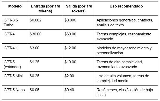 La plataforma funciona con un modelo de pago por uso, basado en la cantidad de información procesada, medida en tokens. Cada token equivale aproximadamente a una palabra o símbolo, y los precios varían según el modelo y la complejidad de la tarea.