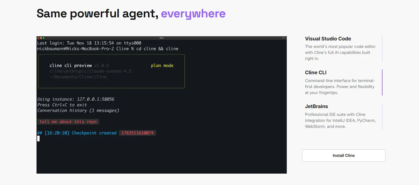 Cline nació en 2024 como un experimento surgido en un hackathon enfocado en modelos avanzados de lenguaje. Desde el inicio buscó superar el autocompletado tradicional, explorando cómo una IA podía planificar y ejecutar tareas complejas dentro de un entorno real de desarrollo.