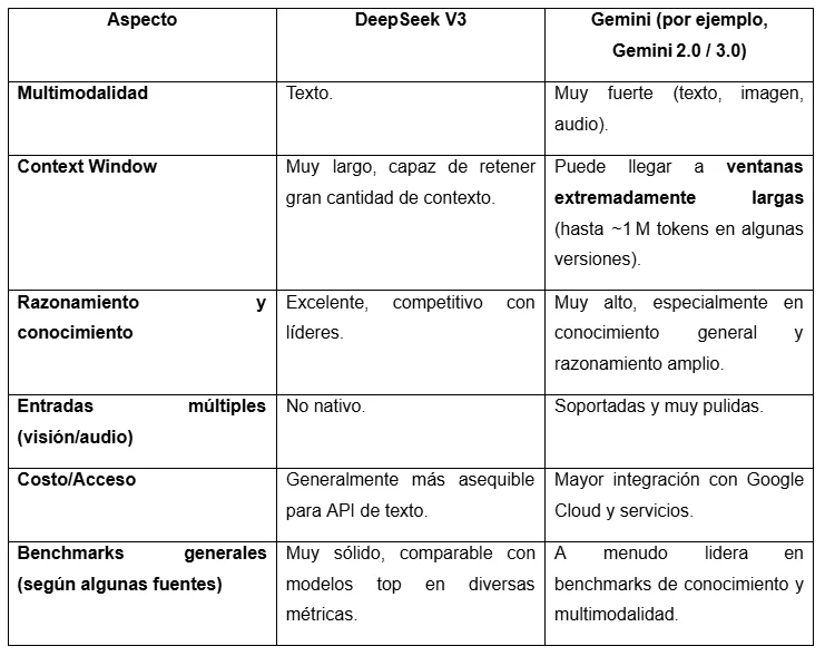 Depende del caso de uso. DeepSeek V3 es competitivo en generación de texto, razonamiento lógico y tareas de programación, y puede sustituir a otros modelos en estas áreas. Sin embargo, no tiene capacidades nativas multimodales completas, por lo que para tareas que combinan texto, imagen o audio, modelos como GPT o Gemini podrían ser más adecuados.