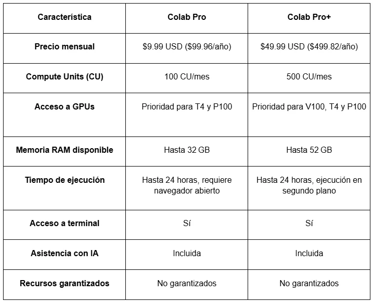 Si entrenas modelos con frecuencia o necesitas más tiempo de GPU sin interrupciones, sí compensa. Si solo haces pruebas ocasionales o proyectos pequeños, probablemente con la versión gratuita te baste.