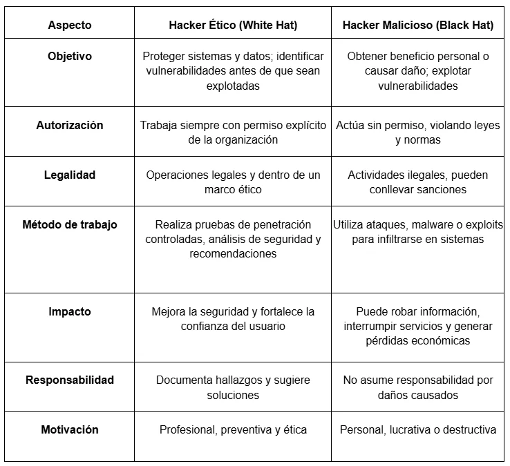 El hacking ético es la práctica de explorar sistemas informáticos, redes o aplicaciones con el objetivo de identificar vulnerabilidades antes de que puedan ser explotadas maliciosamente. A diferencia de los hackers convencionales que buscan beneficios ilícitos, los éticos actúan bajo autorización y con fines preventivos, evaluando la seguridad y proponiendo mejoras.