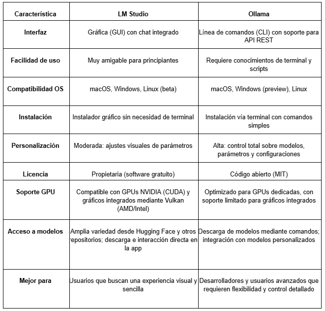Básicamente, está diseñada para que desarrolladores, investigadores y entusiastas de la inteligencia artificial puedan probar, experimentar y personalizar diferentes modelos de manera sencilla, explorando todo su potencial sin depender de servicios en la nube ni de configuraciones complicadas.
