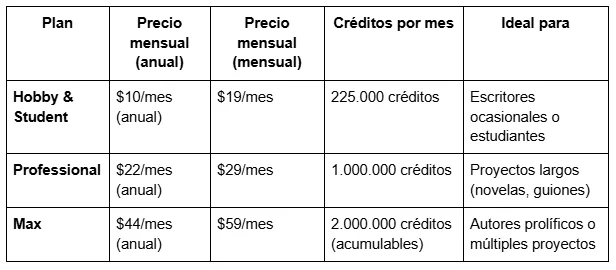 Como te comentamos, SudoWrite tienes diferentes planes y precios. Te los dejamos en el siguiente cuadro comparativo: