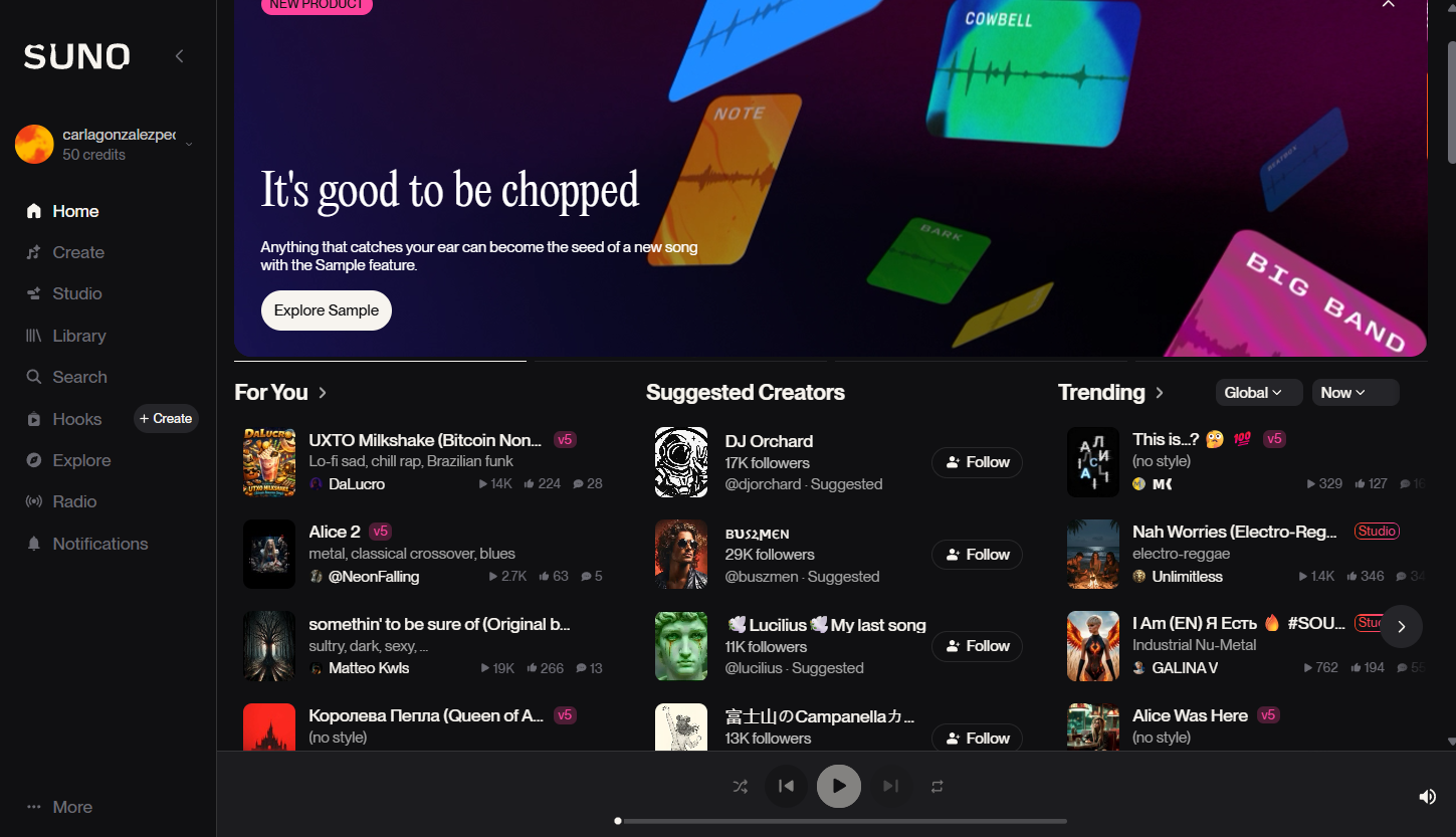 ● Estímulo a la creatividad: Suno AI te invita a explorar tu creatividad al ofrecerte la oportunidad de crear música que va más allá de tus expectativas previas.